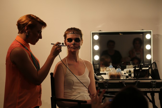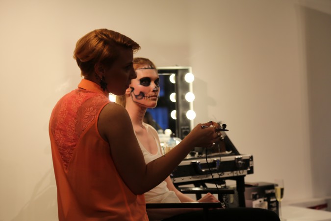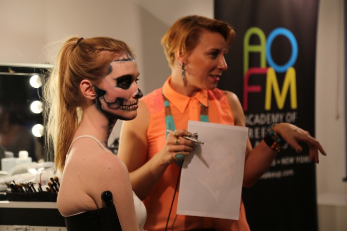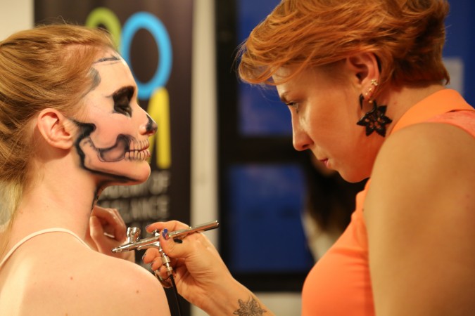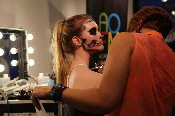 Aofm Were proud to host another masterclass this time with Dani Fonseca who designed the infamous skeletal look on Lady Gaga and her co host in the Born this way video. Aofm flew Dani in from New York to demonstrate to our Aofm Grads how she achieved this amazing look using airbrush makeup techniques. Dani Started off by sketching the bone structure on the models face with a makeup tattoo pen before applying the airbrush makeup. Dani showed our Grads how to work the airbrush to created shadows and highlights and also 3D effects. Our grads got to learn some amazing tips and tricks when using airbrush makeup creatively.Dani used Temptu airbrush makeup to create the look using various dark shades to create 3D effects and showing our grads how to blend and fade with the airbrush. The master class was a huge success and our grads some great techniques to the creative side of airbrushing.