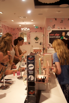 AOFM once again held an exclusive Benefit masterclass for our graduates, at their Carnaby Street flagship store, lead by Lisa Potter-Dixon. Benefits very own head makeup & trend artist. A glass of bubbly and cupcakes were served upon arrival before Lisa told the graduates about her background and industry experience working as a makeup artist backstage for designers such as Matthew Williamson amongst many more big industry names. The full range of products were on display for the graduates to test and play with. Lisa did a demonstration of a classic smoky eye, evening makeup look on a chosen modelwhilst telling the story behind the brand and using her favourite Benefit hero products. The “stay don’t stray” primer being one of them which showed to be a favourite amongst the students too. After the demonstration Lisa stayed behind for a q&a with the graduates and then the evening was continued with shopping with am exclusive discount on the main floor.