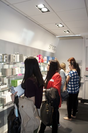 With a mirror each at our stations and wearing fetching hair bands, we got to experience a whole routine of products on our own skin. This gave us a real insight into how the products work and feel, giving us an extra edge for future makeup applications. With glowing radiant skin it was time to go upstairs and shop away, here we each had a personalised skin analysis with a special piece of eye equipment worn by the therapists of Dermalogica. With a exclusive discount for us to use, it was the perfect time to fill up our skincare kits. AOFM are the only official sponsored academy of Dermalogica, something we are very proud of.