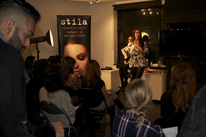 Our graduates were invited to AOFMs renowned FREE Masterclass with a champagne and canape reception at our London Studios before joining artists from Stila Cosmetics! Our graduates learnt all about Stila’s brand heritage and the importance of utilising social media in industry networking before watching a make-up demonstration using the full Stila Cosmetics product range. The head of makeup from Stila showed our grads how to create a Autumn\Winter foil metallic look on the eyes with with this seasons motto being “Metallic is the new black!” Our Graduates also gained some valuable knowledge on how to start of in the makeup industry as well as how to market yourself as a makeup artist through social media . AOFM are proud to offer our graduates our FREE Master-classes with the industries most elite professionals!