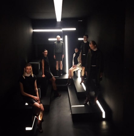 The inspiration for the SS17 collection is the sea. The designers mirrored the gills of fish by crafting slits into the fabric across shoulder blades as well as cut-outs inspired by the movements of marine life such as sharks and stingrays. The inspiration of the sea was further reflected in the set design; the dark abyss; the rays of light as they shine through the waters.