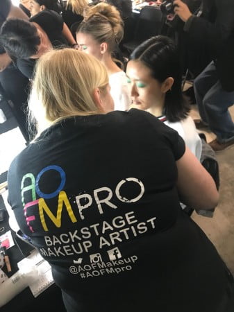It was a busy backstage environment today, with the hair team, style team and makeup team all working in tandem to reach the call time! Once all of the models were ready there was just enough time for a couple of grads to walk down the line up and check over the makup before the show began.