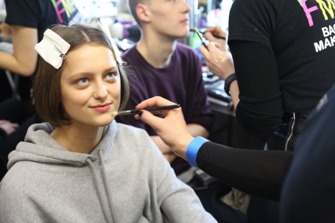 This season marks the seventh season that AOFM graduates have joined streetwear brand YMC for fashion week, with a strong relationship already in place, it was a case of our graduates catching up with our friends this afternoon as they created the look for the AW17/18 presentation in the heart of Covent Garden, Central London. The graduates arrived to a mid morning call time ready for an hours presentation in the afternoon.