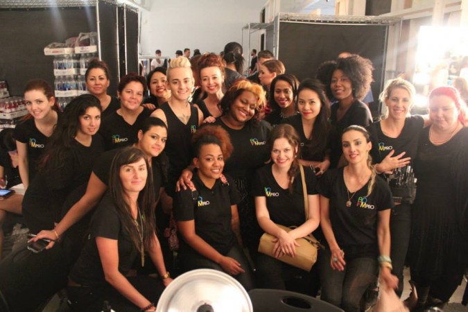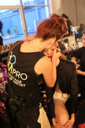 AOFM sent a team of grads backstage at New York Fashion Week to work on the Joanna Mastroianni’s show. Our grads created a graduated black/grey smokey eye with a coral lip to give a summery feel. Check out the video of our graduates great work.