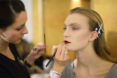 AOFM graduates applied ALL the makeup for one of London’s up coming designer duos Fyodor Golan at London Fashion week on schedule show space at Summerset House. The makeup was fun over the top and made headlines all over the world when they created the green goddess look for the show finally. Check out the video below and see the great work they did.