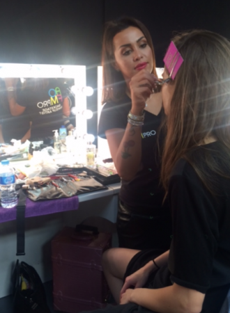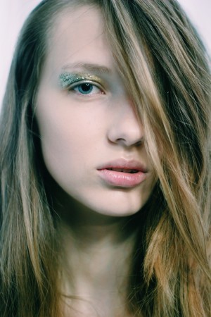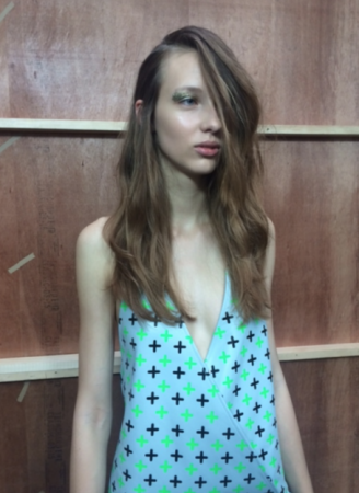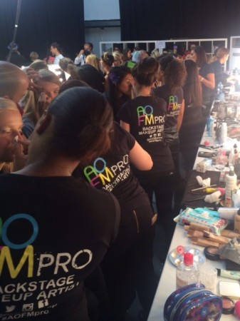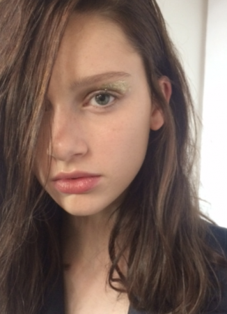 For Fyodor Golan the look was perfect for the futuristic style with lots bold geometric prints. Skin was prepped with Dermalogica. The main focus was a textured metallic gold eye make up and glossy dewy skin created with Egyptian Magic cream gave a beautiful finish complimenting the collection.