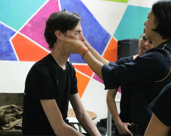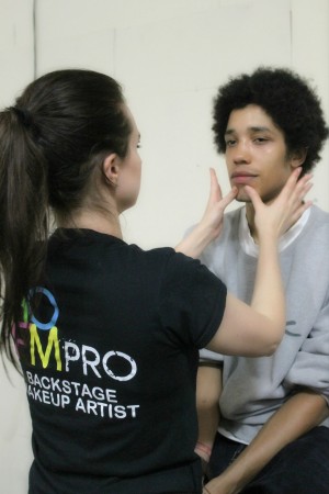 AOFM graduates were backstage at the unique setting of The Vaults in one of Waterloo’s subways for the Harvey Nichols | BeenTrill presentation. There was minimal make-up used. A touch of Elizabeth Arden 8 Hour Cream was added to Embryolisse moisturiser to help achieve a dewy glow. This was primarily kept to the cheeks and forehead with a little on the nose. 8 Hour Cream was applied to the lips and if lips were flakey, then a lip scrub was used to get rid of any dry skin. This also helped to bring out the natural colour of the lips.
