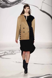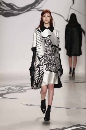 The AOFM graduate team headed down to the Salon at the Lincoln Centre to work on the Lie Sang Bong Show in New York. Architectural and structural designs with an artistic touch sum up the Lie Sang Bong AW15 collection which was titled ‘Oriental Ink’. This season, Lie Sang Bong collaborated with Sun K. Kwak, a New York-based artist known for her three-dimensional space drawings constructed entirely of masking tape, to transform the runway into a work of art. The background was the perfect setting for the show.