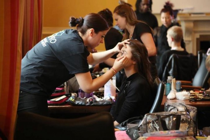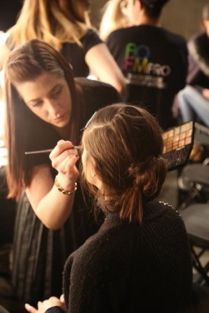 AOFM headed makeup teams backstage for over 20 shows during London Fashion Week.  Offering over 200 assisting position for our graduates during this most prestigious fashion event.  This season AOFM was working with some of the industries leading designers including Haizhen Wang, Fyodor Golan, Corrie Neilson, Bora Aksu, Bas Kostos, and Emilia Wickstead, which were all main scheduled shows in the BFC tent.  Not only were we working all the main stage events, but AOFM was backstage for all the On-Off shows too.  No other makeup school can offer the amount of assisting opportunities to their graduates like AOFM.