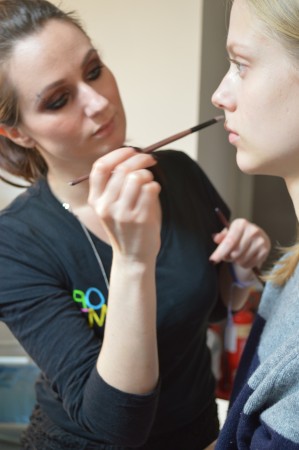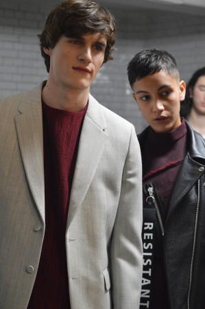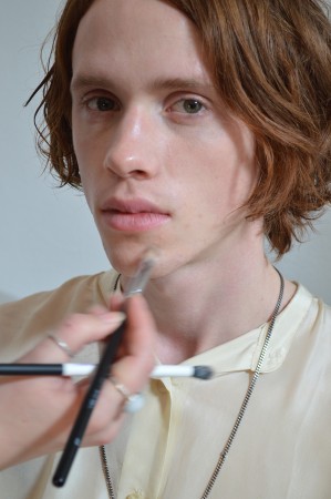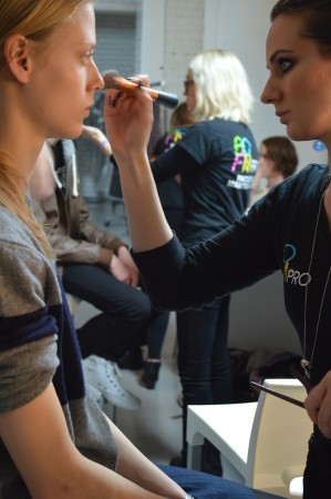AOFM were honoured to head the makeup team for the Matthew Miller Show for another season. The atmosphere backstage at Victoria House was electric, it was fast paced and our grads did an excellent job achieving Matthews vision of perfected minimal makeup. The look this season was minimalist and fresh faced. Headed by Key Artist Michelle Webb, our grads achieved this by cleansing the skin with Dermalogica Ultra Calming Cleanser, followed by dermal exfoliation using Dermalogica Microfoliant to achieve an ultra smooth surface. The Models skin was hydrated using Dermalogica Active Moist Cream. The lips were moisturised using Elizabeth Arden 8 hour ointment pressed into the lips. Minimal amounts of sheered down MAC concealer was buffed into the skin to create an even tone. The brows were brushed and groomed upwards using Catrice brow gels. The cheekbones were accentuated using Benefit High Beam, followed by a light contour to add depth,using MAC Contour Pallete. A light dusting of translucent set powder was applied as a final touch to minimise shine to finesse the look of matte masculinity!