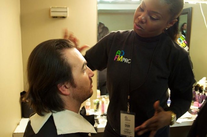 Backstage, NYC AOFM graduates assisted AOFM Pro Team Lead Artist, Michelle Webb in prepping the performers & Models for their debut. This was an amazing opportunity for our AOFM graduates to work with yet another leading designer in the fashion industry.