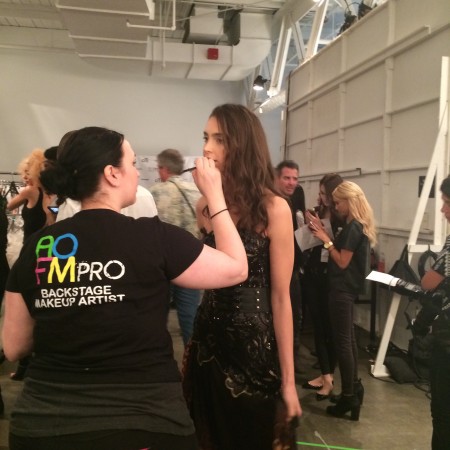 AOFM graduates were backstage for its 7th season at NOLCHA in NYC. The venue was again the amazing pier 59 studios at Chelsea Harbour. We had 3 separate looks to create for 8 designers. Nolcha is always a very busy but exciting show for our graduates with lots of models to be made up and with lots of different looks.